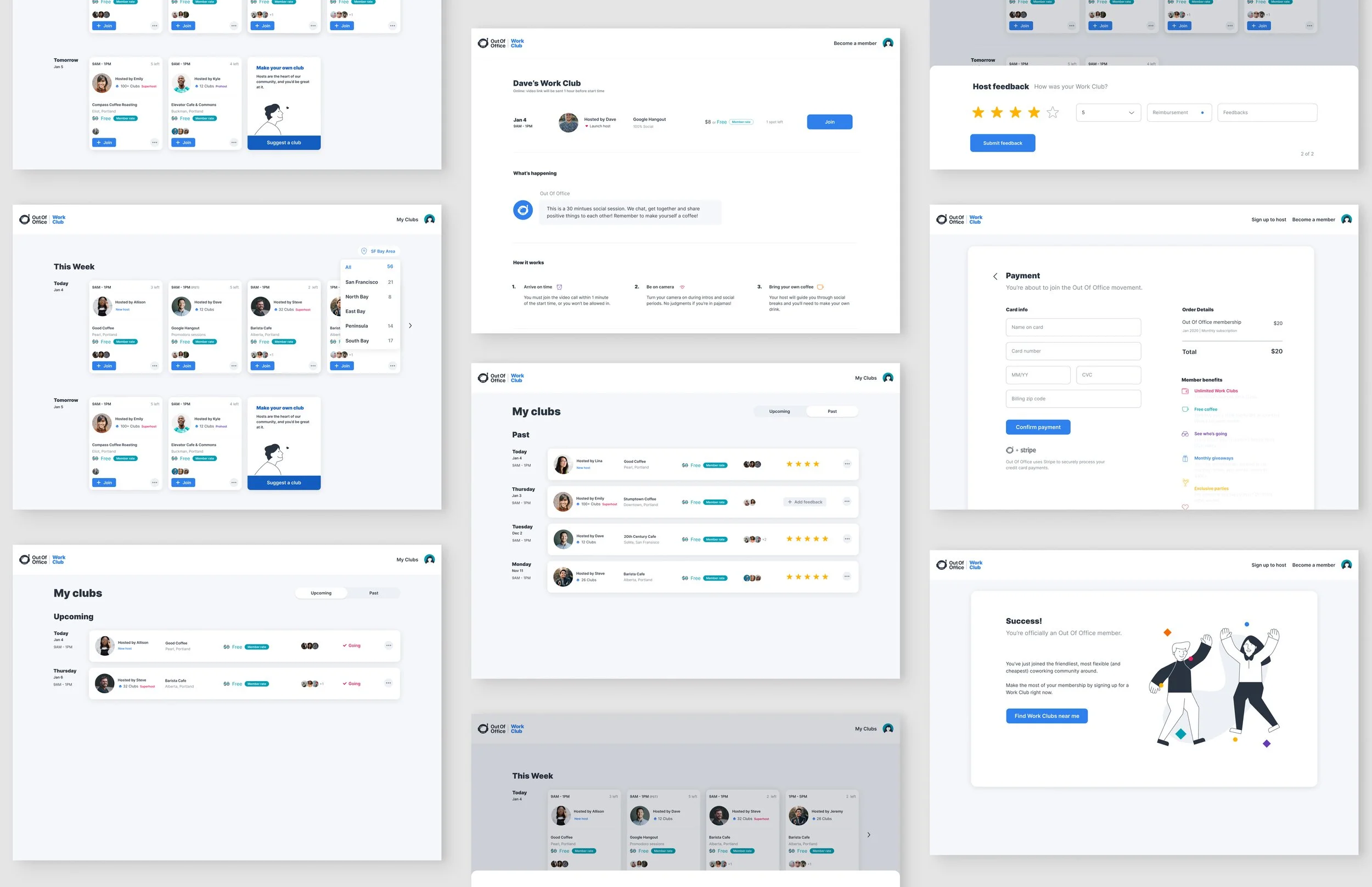 The solution offers quick access for attendees to browse work clubs by date, with each row sorted chronologically by date and time. This design incorporates research findings, enabling users to quickly browse and join upcoming work clubs while fostering a sense of connection through attendee visibility.